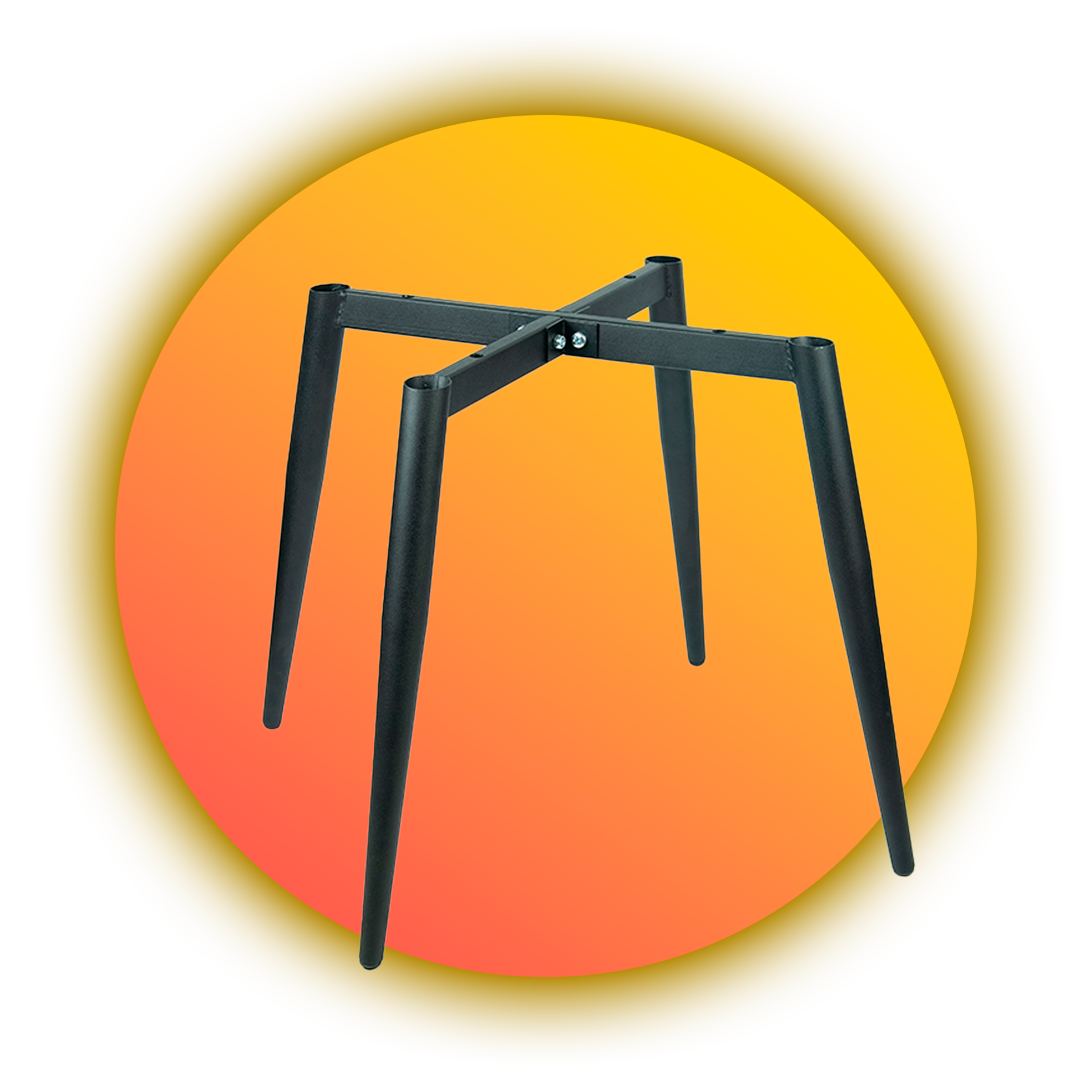 Мебельная опора металлическая сборная "Денвер" для стульев имеет конусную форму ножек и высоту 406 мм от пола. Выполнена из прочной стали, толщиной 120 мм. Конусование ножек от 32 мм у основания до 16 мм к низу. Универсальный каркас "Денвер" можно использовать для изготовления стульев. Мебельная опора выполнена в минималистичном стиле и окрашена порошковой краской в черный матовый цвет.Покрытие муар.Угол наклона ножек 15°.