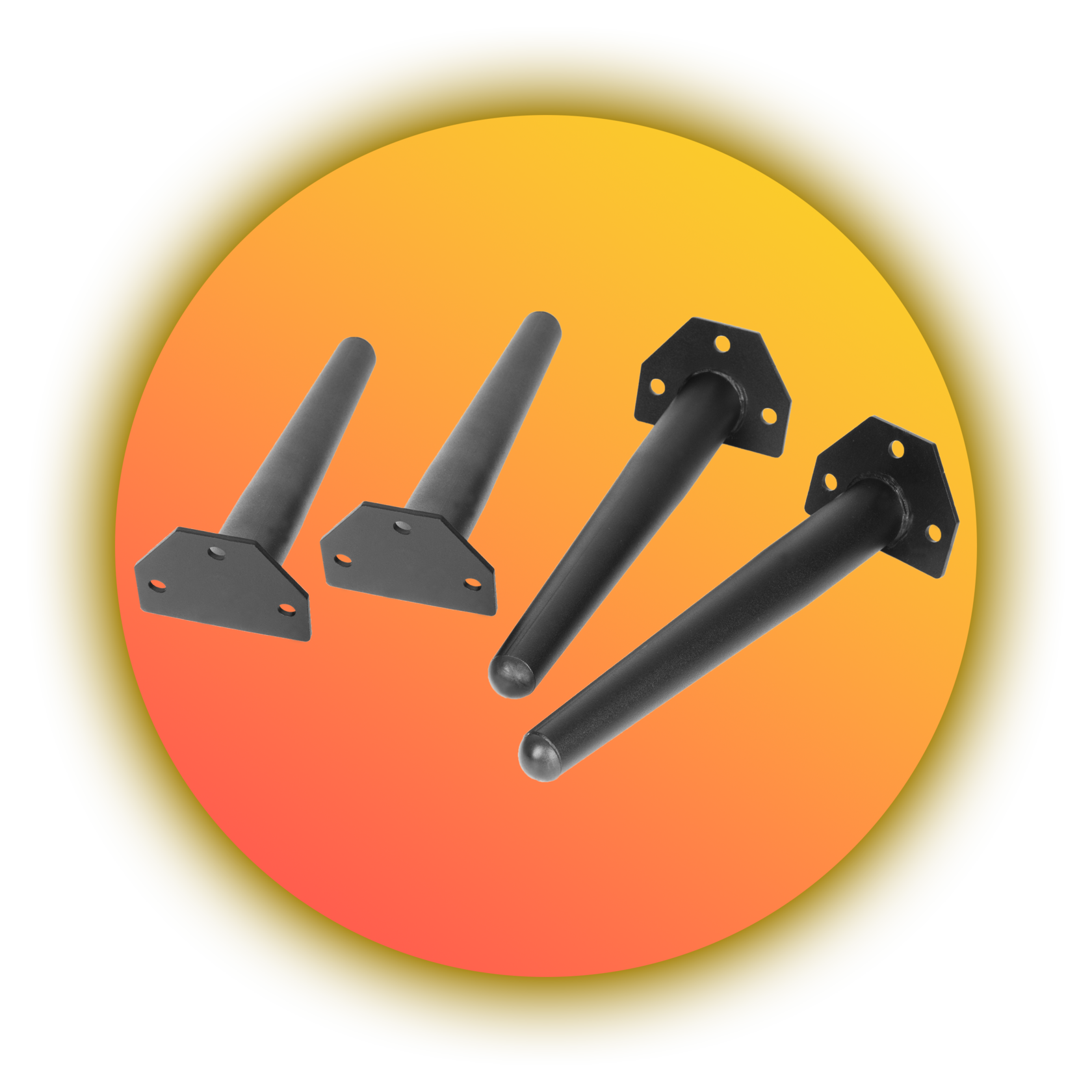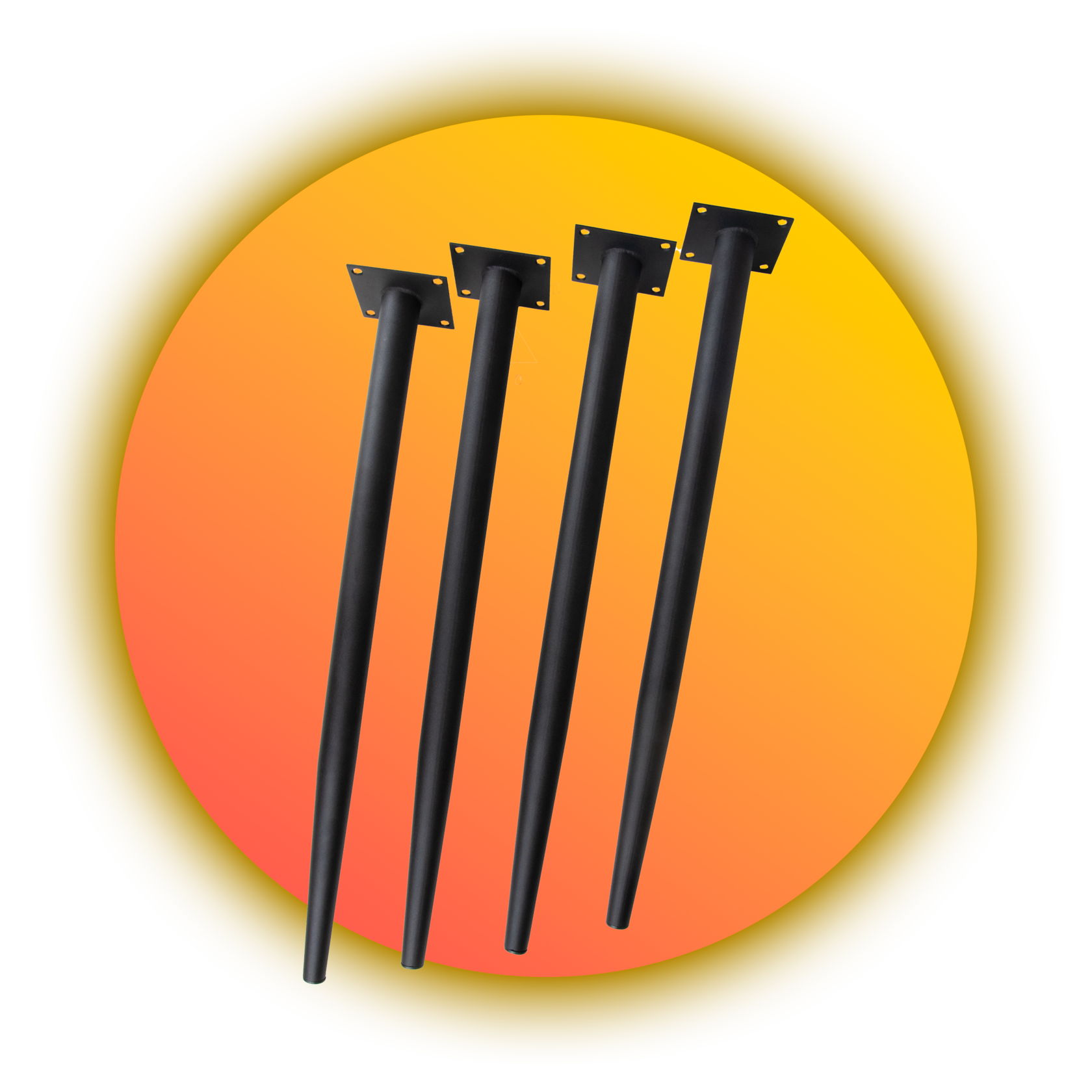 Металлические мебельные ножки на фланце высотой 406 мм имеют конусную форму. Выполнены из прочной стали, толщиной 120 мм. Конусование ножек от 32 мм у основания до 16 мм к низу. Комплект мебельных опор подходит для изготовления разной мебели. Например, как подстолье для стола, ножки для стула или кресла, мебельные ножки для тумбы, ножки для пуфика, ножки для табурета.Ножки вминималистичном современном стиле, окрашены качественной порошковой краской в черный матовый цвет. Покрытие муар. Угол наклона ножек 15°.